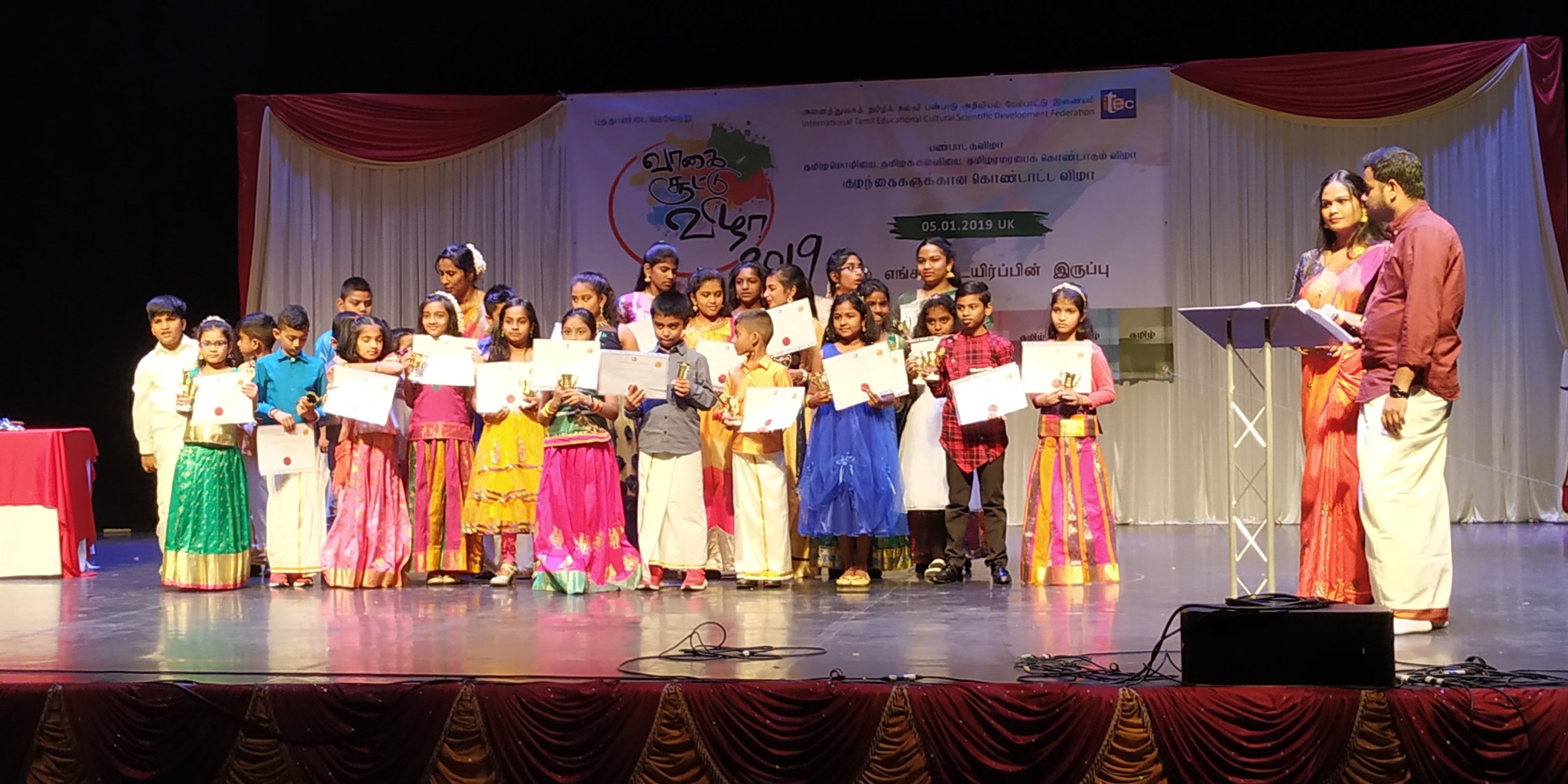 International Tamil Educational Cultural Scientific Development Federation (ITEC) organised the வாகை சூட்டு விழா 2018 in the UK on 5th January 2019. Schools across the country had facilitated the travel arrangements for their pupils and their parents to be able to attend this splendid festival-like event. The show was hosted by excellent IBC Tamil Radio presenters Dayani and Shatiesh. They kept the audience captivated with their excellent Tamil eloquence throughout the show.