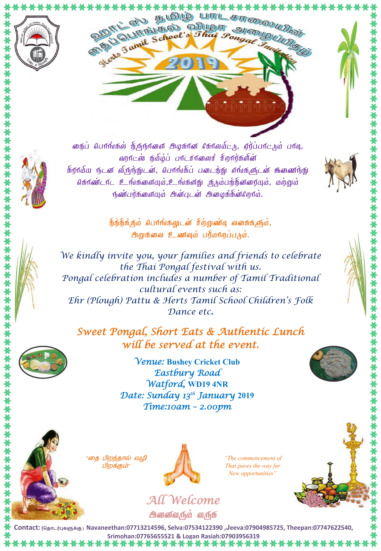 We kindly invite you, your friends and families to celebrate the Thai Pongal festival with us.