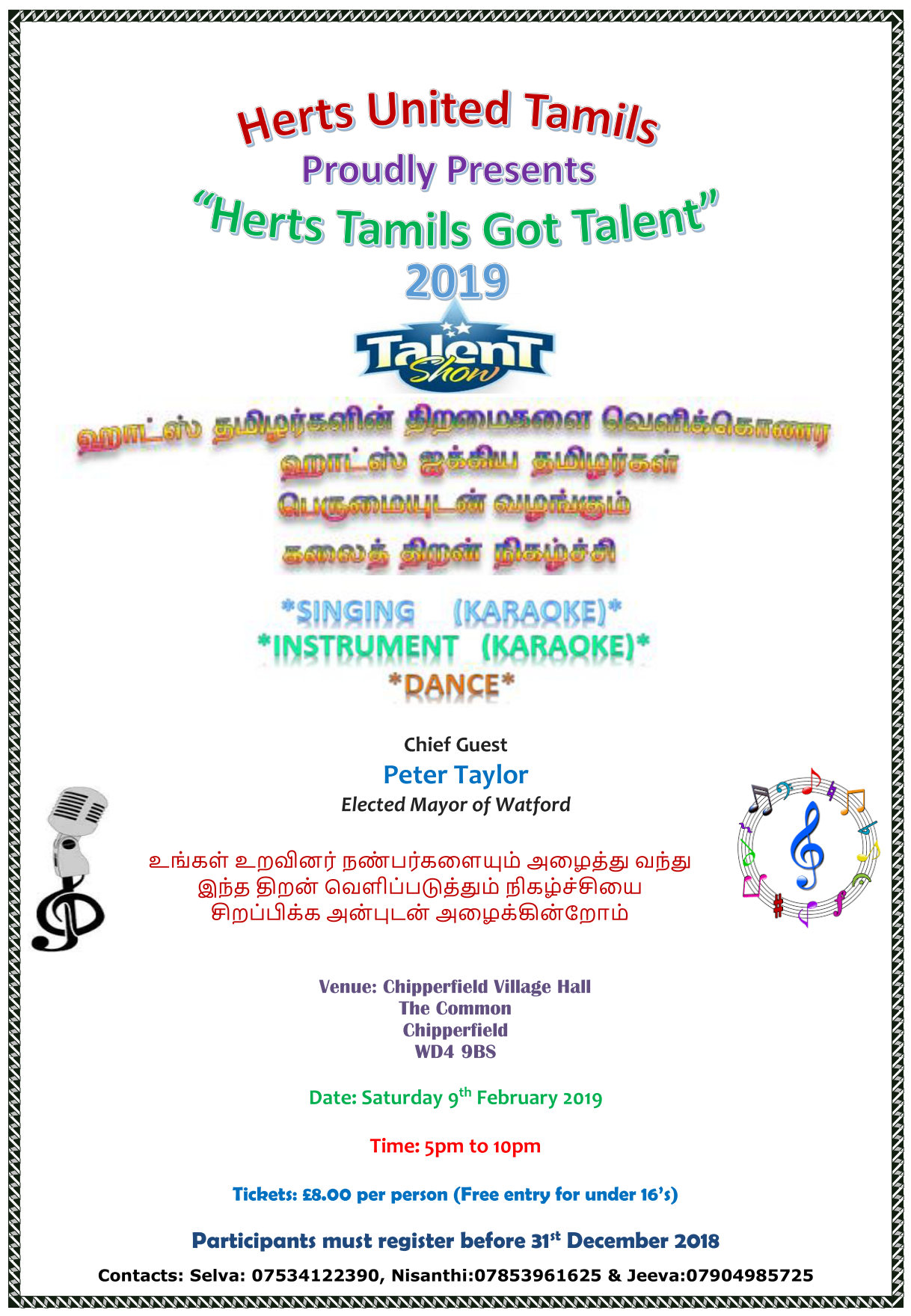 Herts United Tamils is organising the “Herts Tamils Got Talent 2019”, a Talent Show.